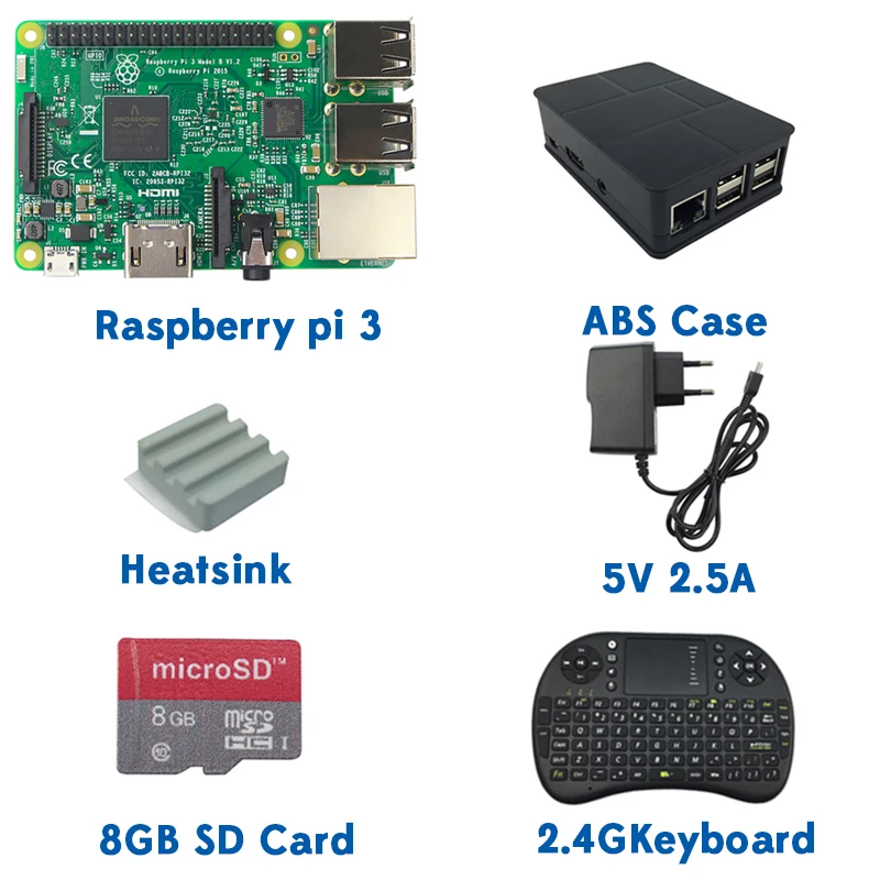 Main Features : 2016 Raspberry Pi 3 model B+8G SD Card+ABS Case Box+Ceramic heat sink+5V/2.5A power adapter supply+2.4G wireless keyboard