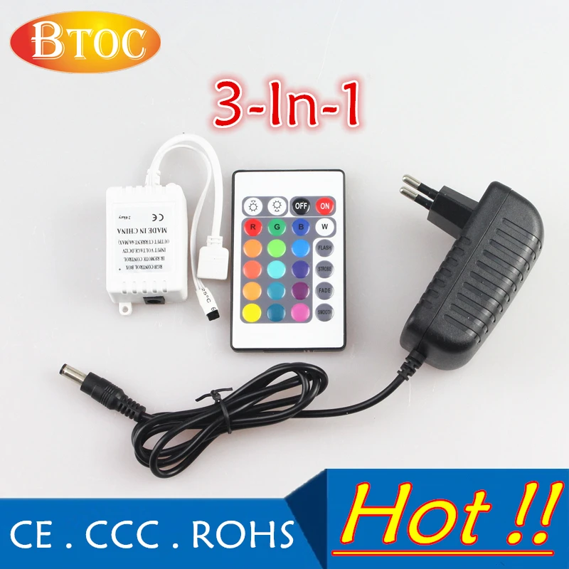 Main Features : 24 Keys IR Remote Controller Wireless DC 12V 2A Power adapter AC100-240V For 3528 5050 RGB SMD LED Strips RGB Controler